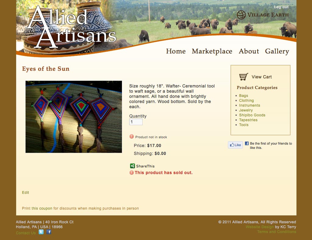 A website designed for Allied Artisans, a company that sells fairly-traded clothing, jewelry, and other goods
